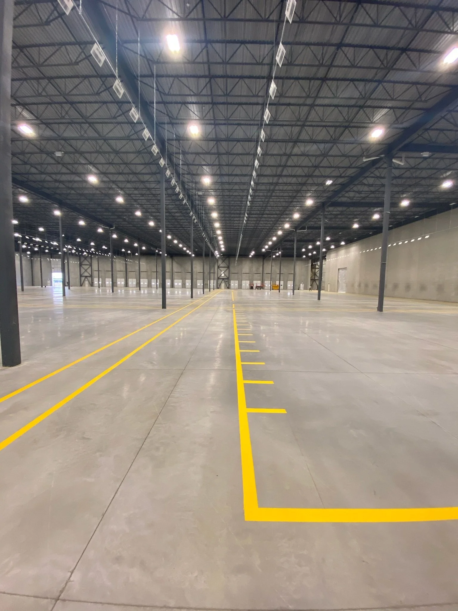 Acrylic Based Line Painting is a more cost-effective & timely solution when compared to an Epoxy line painting system & is used in both exterior & interior applications. This includes parking lots, dock, storage and pallet positioning, pedestrian walkways, fire exits, PPE free zones, tow motor safety lines, etc. The paint is available in multiple colours and is installed from a sprayer with speed & ease. It is dry to the touch in 10 minutes. Acrylic line painting is a quicker but sometimes more temporary solution, depending on the level of traffic the area/work environment regularly sees.